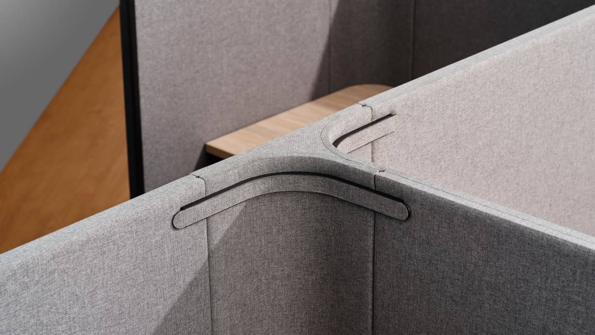 Modular panels allow teams to create on-demand zones for focus, virtual meetings, or respite, embedded directly into the floorplate.