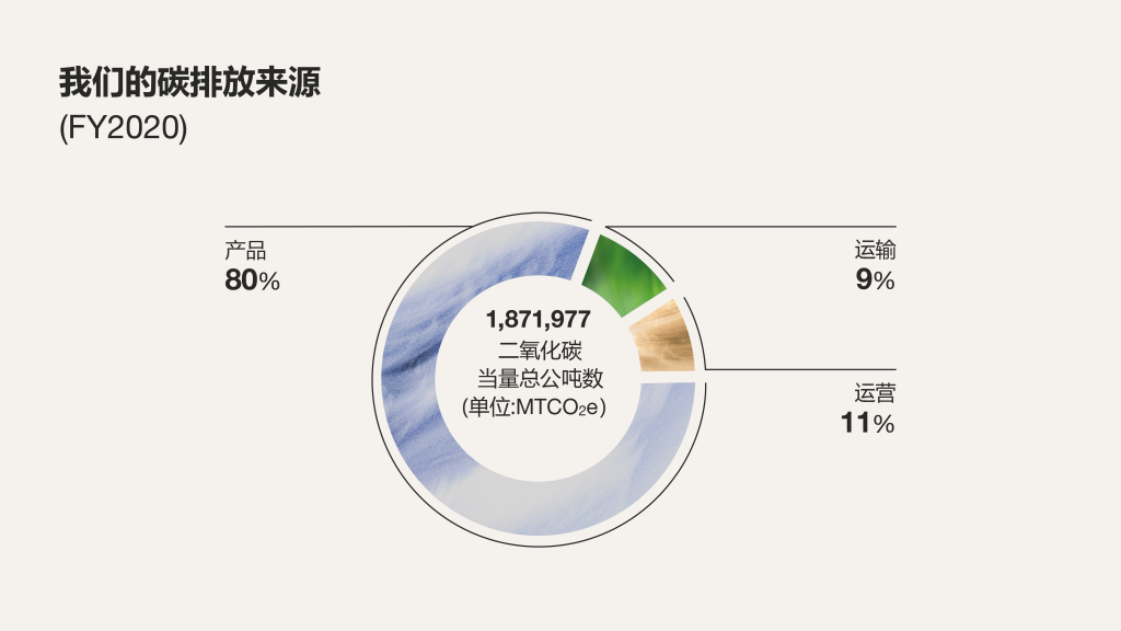 在我们的总体碳足迹中,产品所占的比例最大。我们致力于在材料选择、设计和制造过程中创造低碳解决方案。在运营方面,我们将努力提高能源效率,充分利用可再生能源,并重新设计流程以减少浪费。我们的运输系统,从分销和交付到商务差旅,都将重新构想和设计。