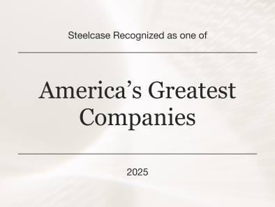 Steelcase is recognized by its peers and third-party organizations around the world for our commitments to people and the planet. ​We're proud to be recognized as an excellent place to work.​