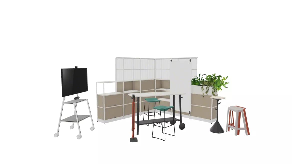 Der Collab Corner ist ein vielseitiger Raum für spontane Zusammenarbeit, Brainstorming, Präsentationsvorbereitung und kreatives Arbeiten. Mit großzügigem Stauraum sowie analogen und digitalen Werkzeugen befähigt er Teams, Inhalte zu erstellen, zu teilen und organisiert zu bleiben.