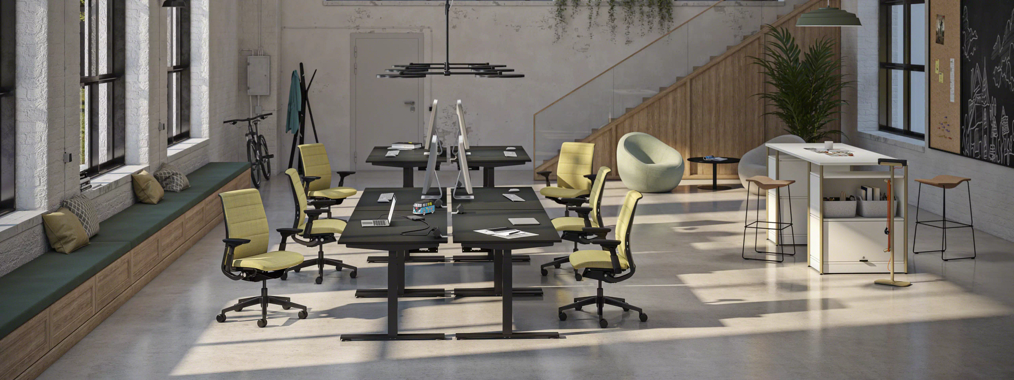 Height-adjustable Possilio® desks allow people to transition between focused work and active collaboration as they see fit. Posture adjustments signal a transition between different work modes, offering a subtle visual cue to neighboring teammates.