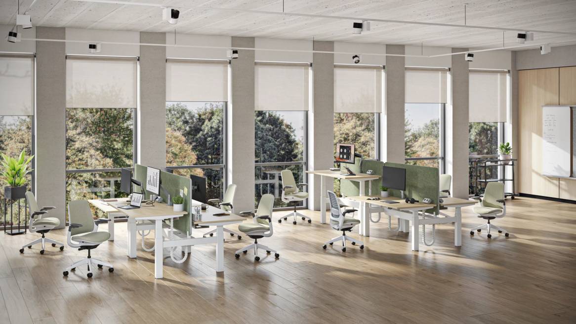 This team space is designed to meet the needs of high-performing teams. The height-adjustable Possilio benches offer a reliable, easy-to-use solution that promotes movement and allows people to switch between sitting and standing for greater comfort.