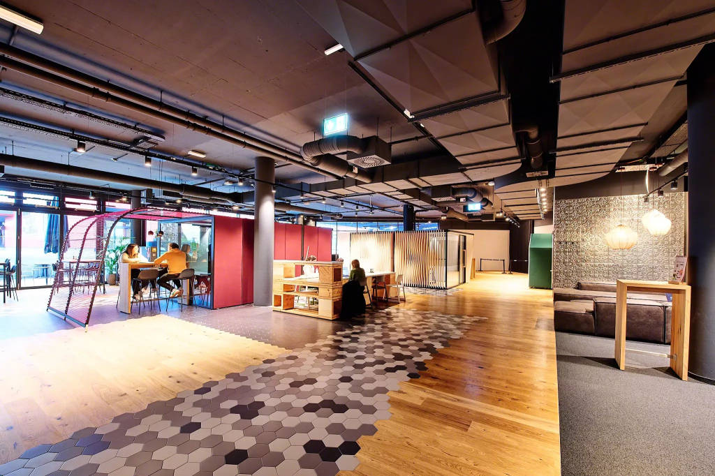 As the day progresses, the space continues to evolve. In the evenings and on weekends, the café becomes a place for social gatherings, after‑work events, and community activities. The space is open on Saturdays, and once a month it transforms into a lively social setting with music, food, and drinks that invites the wider community onto the PUMA campus.