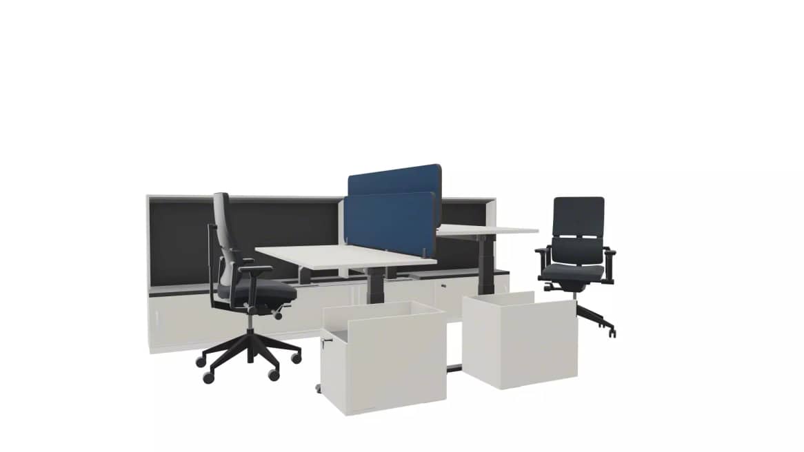 This double workstation is purpose-built to balance collaboration and personal productivity for two users. Ergonomic chairs, adjustable desks, and integrated privacy elements ensure comfort and focus, while nearby acoustic pods provide space for confidential conversations or deep concentration. The adaptable configuration allows users to move effortlessly between paired collaboration and independent work, fostering efficiency and dynamic interaction.