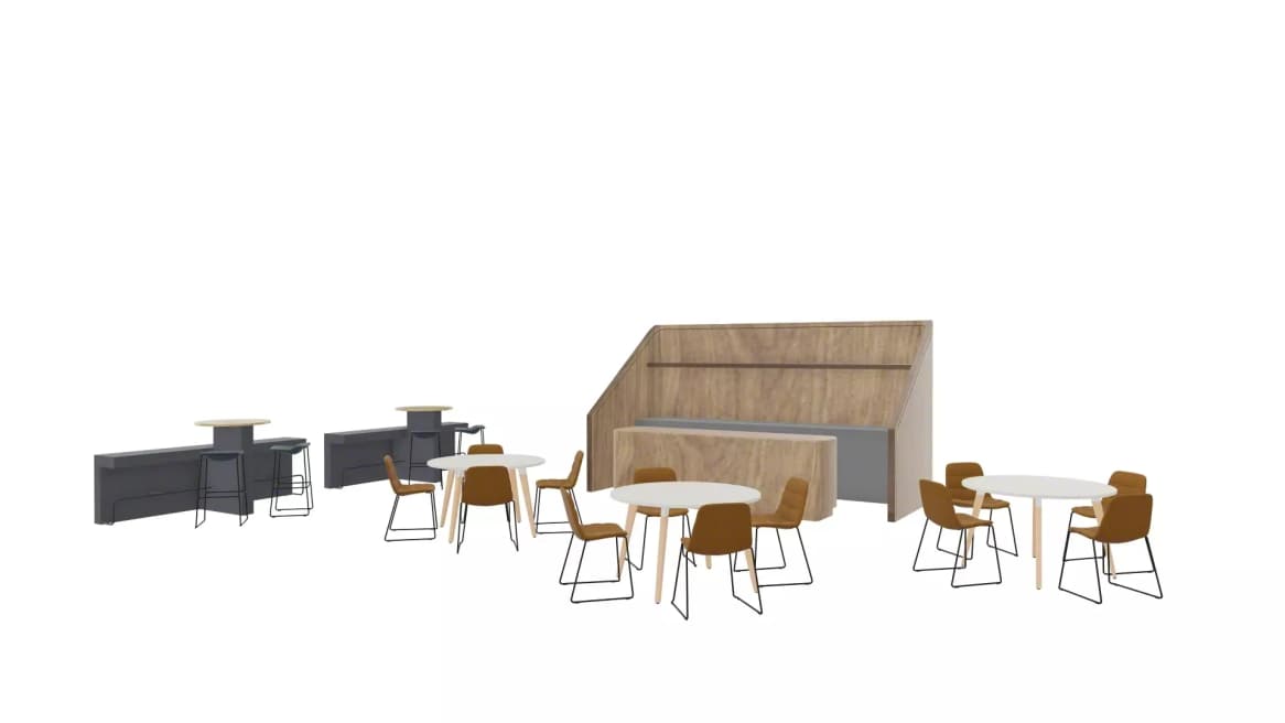 This social space is designed to strengthen workplace community by supporting informal interactions, idea exchange, and everyday moments of respite. A variety of settings—including lounge seating, communal tables, and bar-height counters—allow individuals to choose the environment that best suits their needs. The combination of open and semi-private zones encourages spontaneous collaboration and fosters organic, meaningful connections across teams.