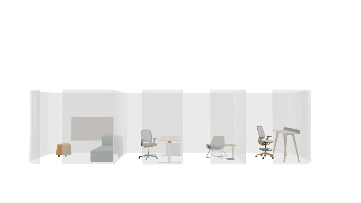 Los Focus Pods son espacios flexibles para el trabajo individual y la desconexión, ofreciendo diversas opciones de asiento. Estos refugios cuidadosamente diseñados mejoran la concentración y brindan un entorno sereno que favorece el bienestar.