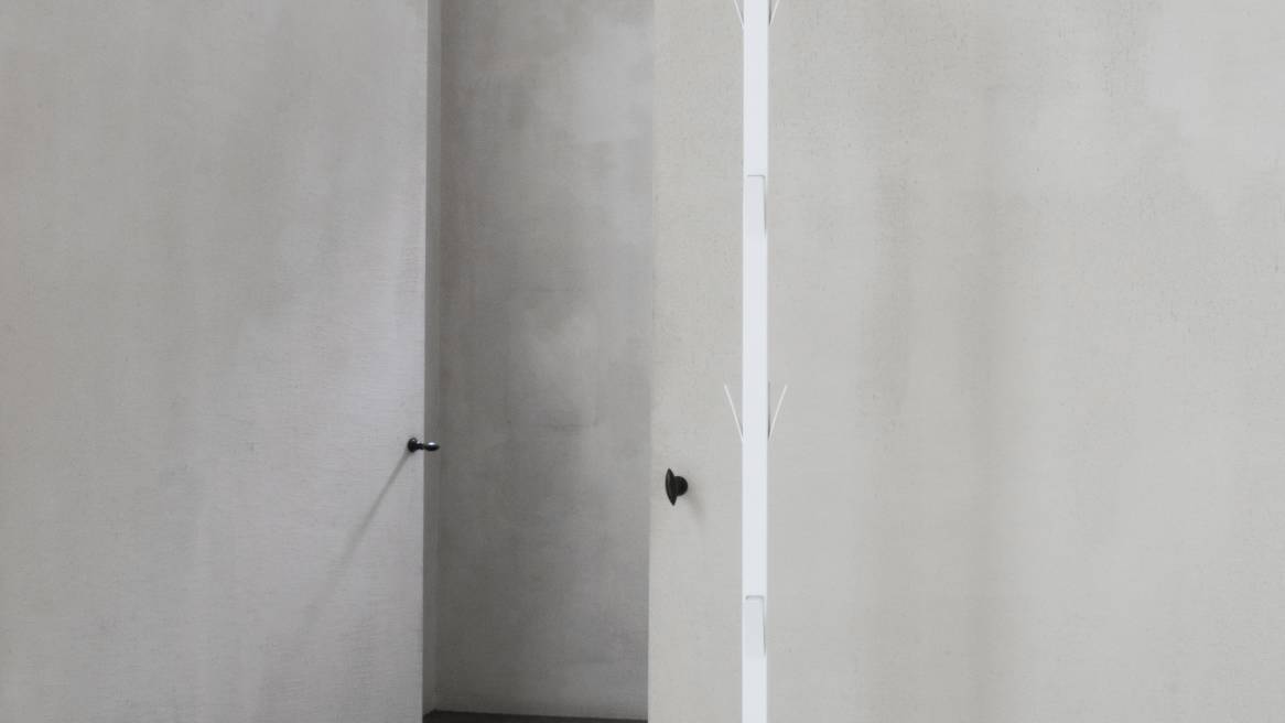 Inspired by Donald Judd’s minimalist sculptures, the ‘windows’ of the rack are laser cut and carefully designed for the proper care of clothes."