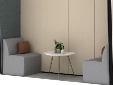 The Campers & Dens product line includes both a large and small sized Camper and related accessories, as well as Campers & Dens lounge pieces and additional power locations. The larger size Camper offers more space for group meetings and collaboration, while the smaller size is ideal for individual focus or smaller groups.