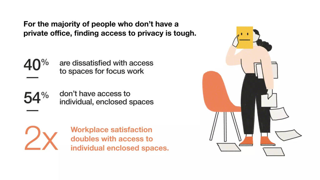 On average, people spend two-thirds of their day working alone, yet they are not happy with the spaces they have available for focus work.