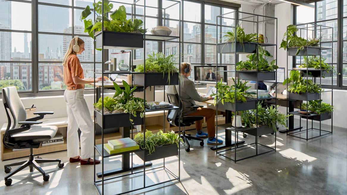 Offices that work well today offer choice and balance technology with human needs, while encouraging people to move throughout the day. They provide spaces for video calls that don’t isolate people, hybrid meeting environments where in-person and remote participants can participate equally, areas for quiet focus without interruption, and inviting places that encourage informal, face-to-face interaction. They are also seamlessly embedding technology into spaces, so it’s no longer a barrier but a bridge between people.