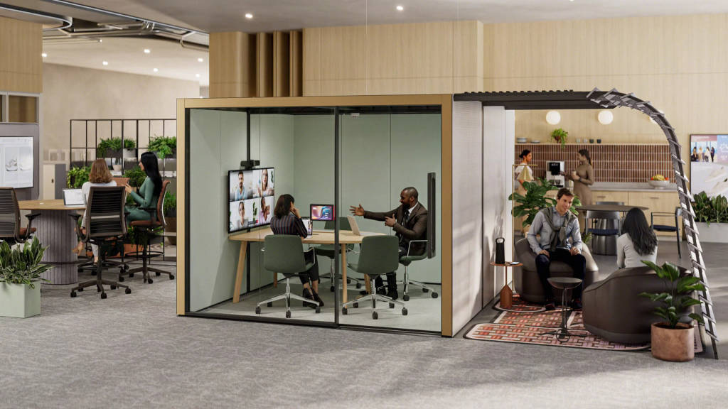 - Nearby pods provides everyone with access to acoustic privacy when needed.