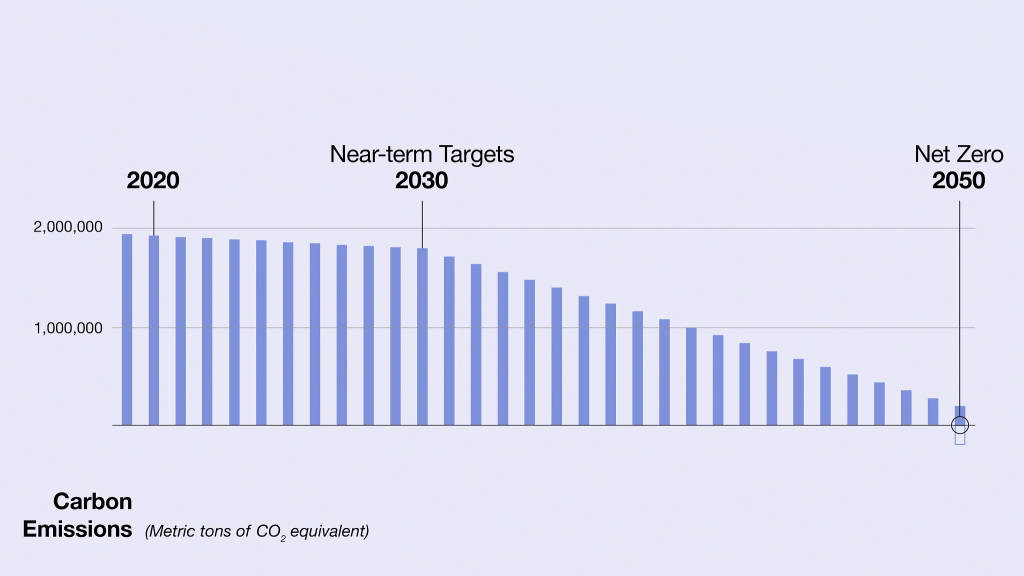 Our commitment to building a net-zero future cuts carbon emissions over 90% by 2050 throughout our entire value chain which encompasses what we make (our products), how we make them (our operations) and the ways we deliver them (our transportation).