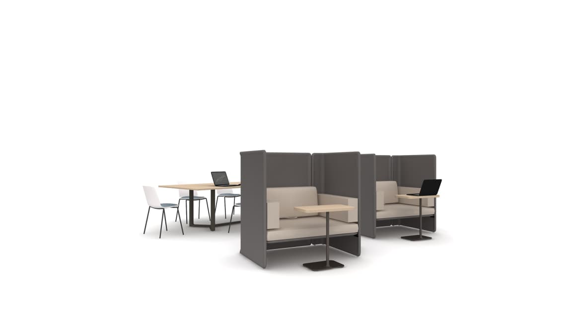 Steelcase Flex Screens, Campfire Slim Table, Bivi Rumble Seat, Campfire Personal Table