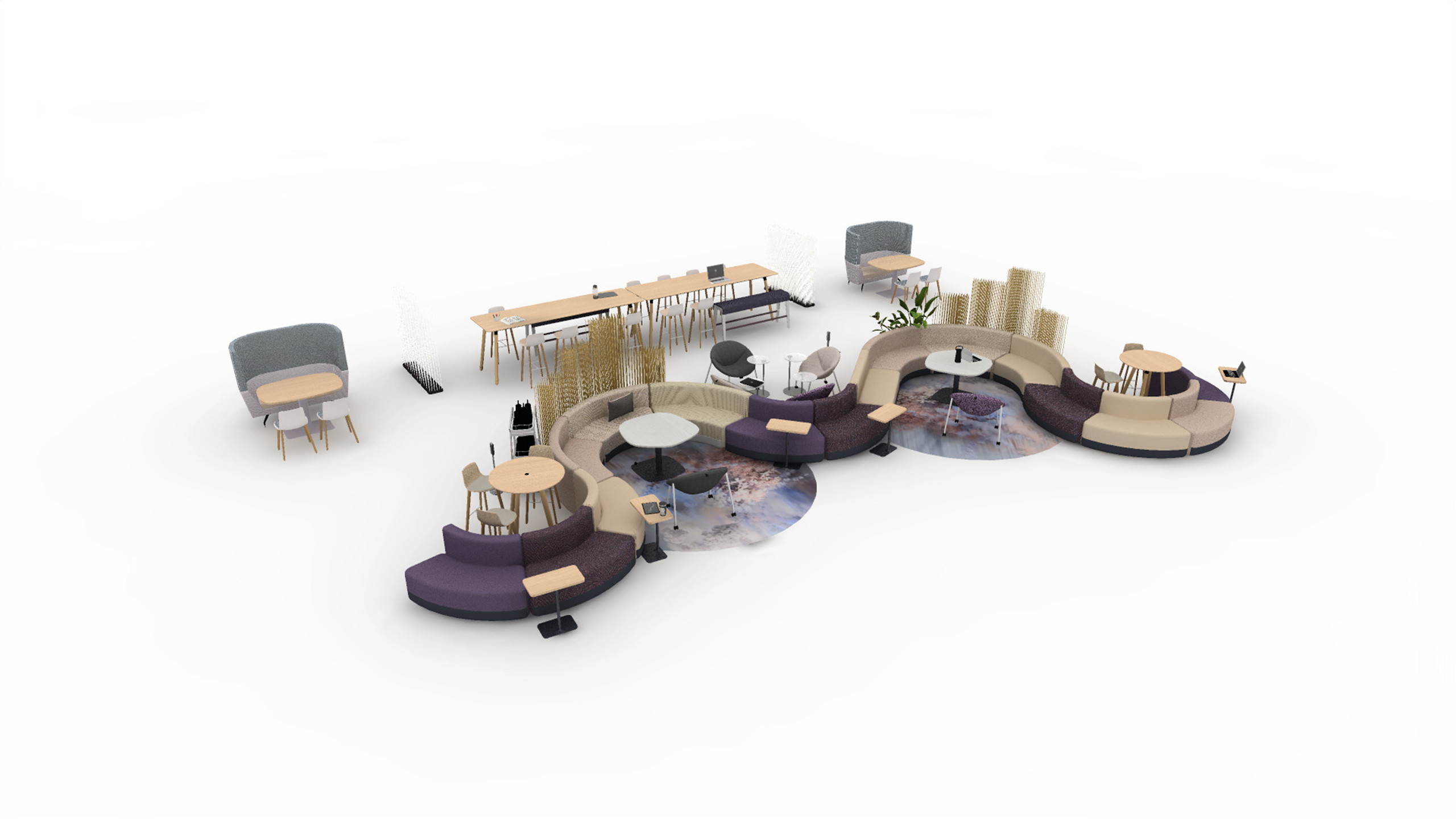 This welcoming and inclusive social hub invites casual gathering, socializing, and light focus.