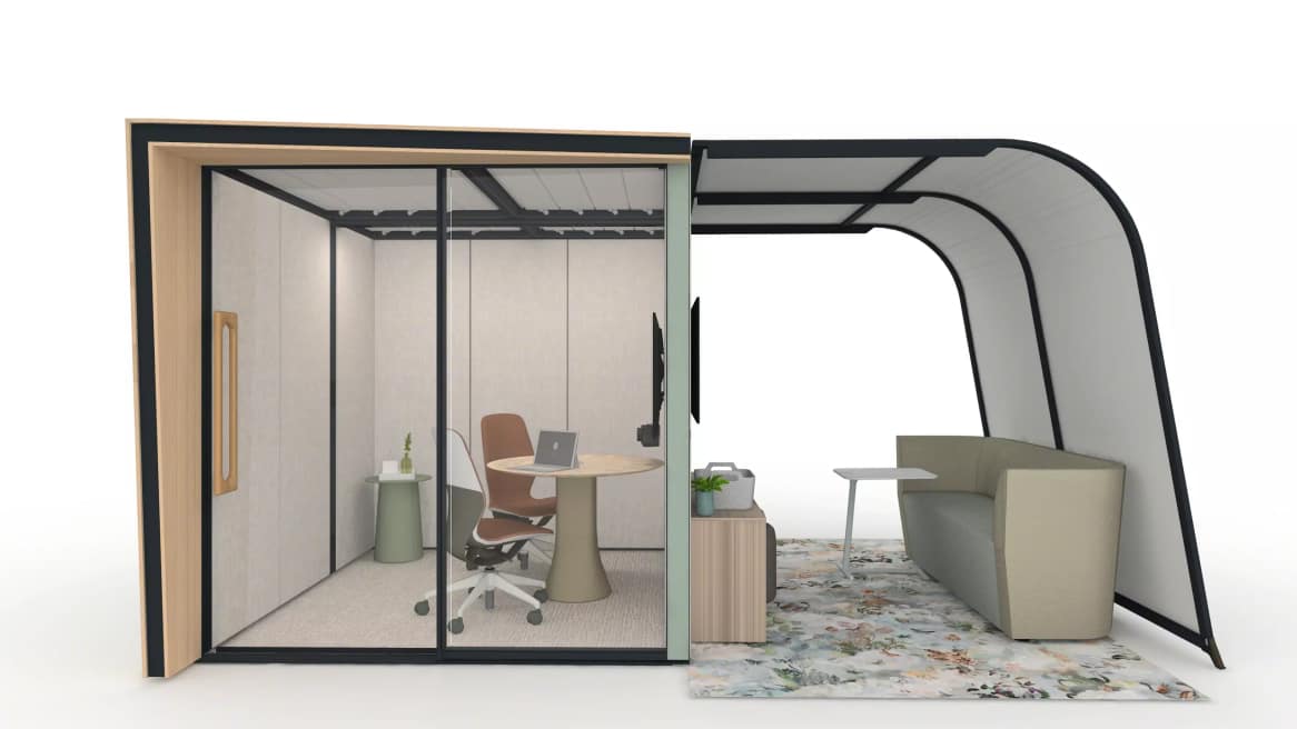 Support a range of different work modes through the layers of privacy, with one space of semi-private gathering and one fully enclosed setting supporting digital collaboration.