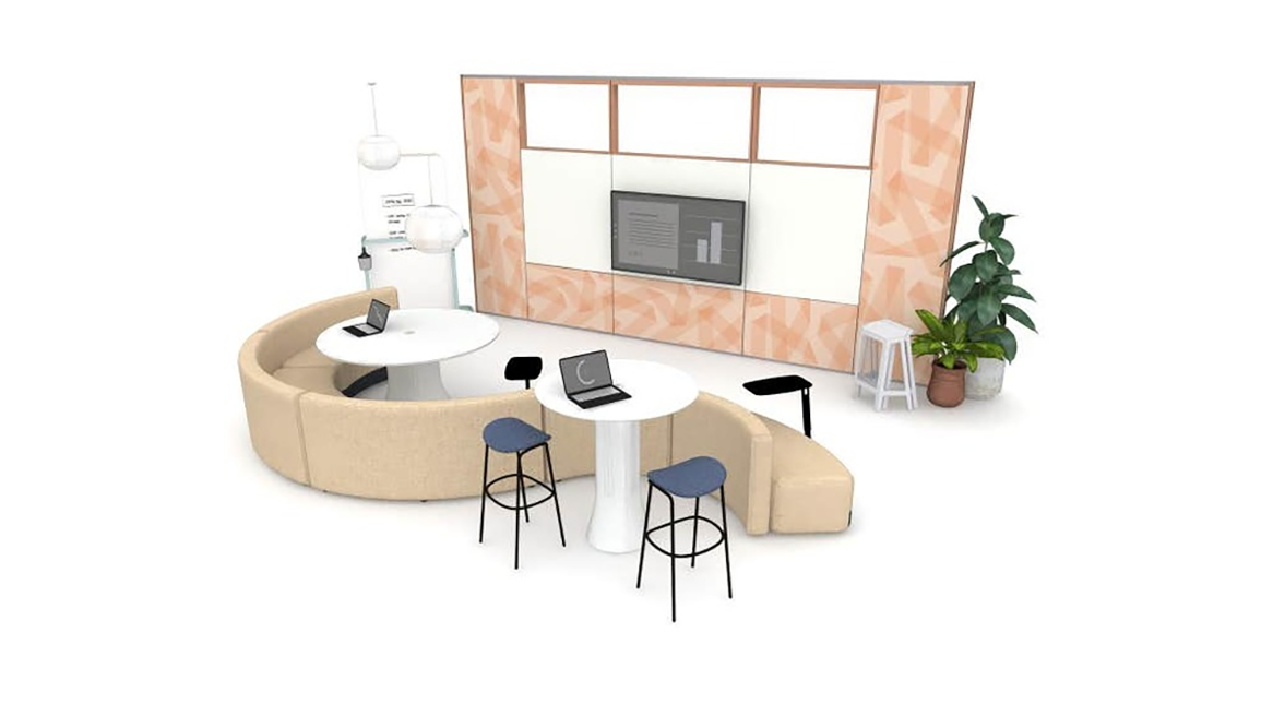 This lounge setting is designed to support fluid, informal collaboration and agile interactions among participants within an open plan. It encourages productivity, boosts creativity and provides a comfortable atmosphere for both scheduled and impromptu meetings.
