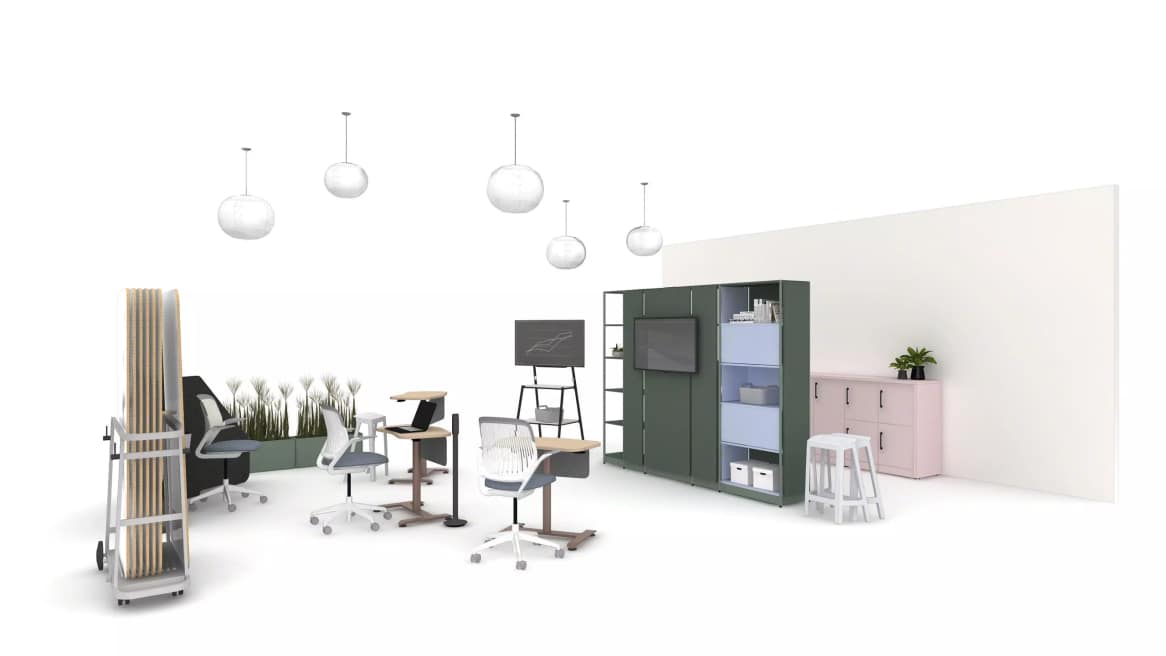 WorkValet™, Steelcase Flex Single Table, Steelcase Flex Perch Stool, Steelcase Flex Media Cart, Steelcase Flex Active Frames, Steelcase Flex Collection, Steelcase Flex Markerboards, Cobi