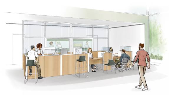 Designed for speed and security, teller areas blend efficiency with care. Configurations move