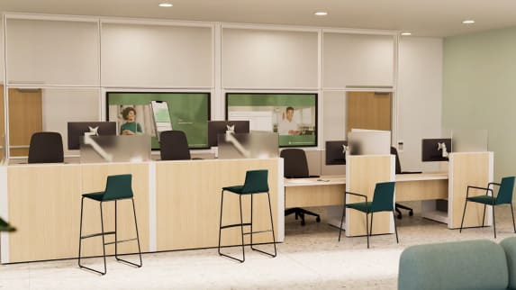 Clients expect branches to blend seamlessly with digital. Spaces must integrate technology that supports both quick self-service and hybrid consultations, ensuring choice and flexibility