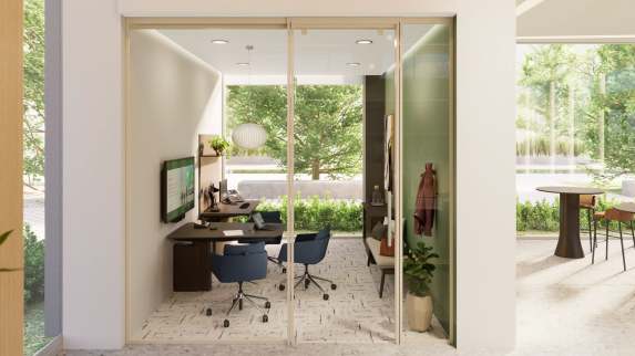 A focused workspace that supports the unseen work behind every client experience. Designed for concentration and adaptability, the admin zone enables employees to move fluidly between heads-down tasks, virtual service, and branch operations—without losing rhythm or focus.