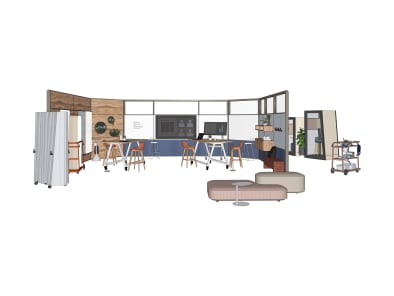 Place this huddle room near team areas to give people a spot for small, on-demand virtual meetings. This pod allows for an enclosed space in an open environment. The louvered ceiling can close for better acoustics or open for more air flow.